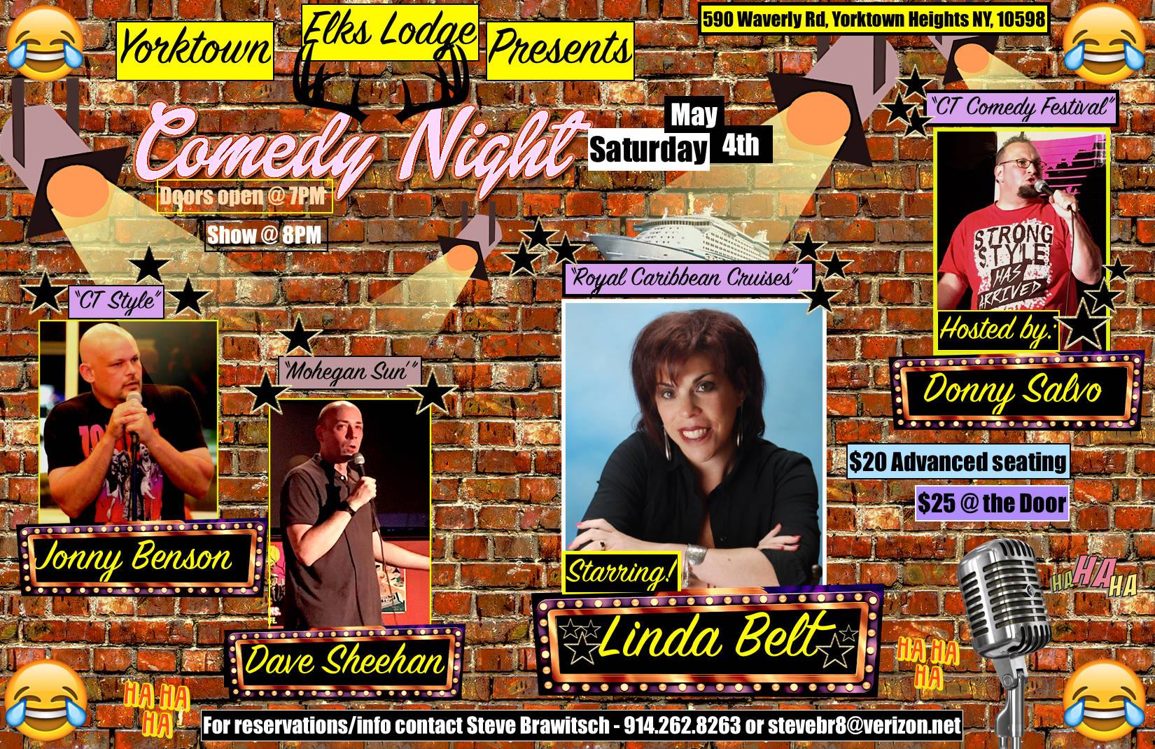 We are thrilled to bring Comedienne Linda Belt to you! Linda has performed throughout the United States and Canada and has been featured in a number of comedy festivals. Her many performance venues include Mohegan Sun, The Laugh Factory in NYC, Brew Ha Ha Comedy Club at City Steam in Hartford and even the Royal Caribbean Cruise Line! Her humor touches on the absurdities of modern life and explores marriage, parenting and social mores, in other words - any subject she feels like discussing!